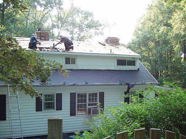 First the old shingles are removed. There were three layers of shingles to remove. I also had a useless chimney removed.
