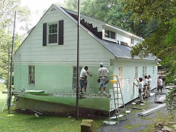 First the workers put up a styrofoam insulation backing layer before putting the siding on. Hmmm, that green doesn't look too bad.