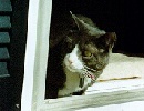 He was a wonderful friend and an excellent companion. I would try to take him with me whenever possible, such as on vacations to my Mom's house in Michigan. He was an excellent traveler and he loved to sit in the car window and watch the world go by. And he was leash trained, although walking a cat on a leash was very slow. He was also excellent at keeping me company when I was working on the computer or reading. But at over 15 pounds, my legs would often fall asleep and I would have to shift around, so he could never get any sleep in my lap. That wouldn't stop him from trying though.